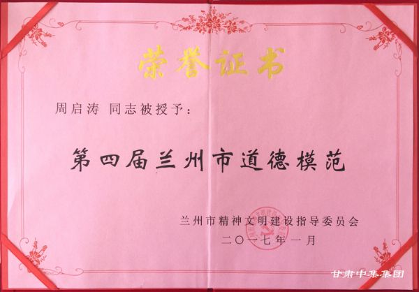 甘肅中集實業(yè)集團有限公司董事長周啟濤喜獲“第四屆蘭州市道德模范”榮譽稱號