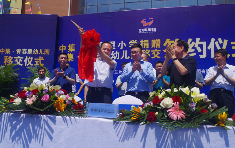 2017年6月22日下午14時(shí),甘肅中集實(shí)業(yè)集團(tuán)有限公司通過甘肅省慈善總會(huì),向蘭州市安寧區(qū)人民政府捐贈(zèng)價(jià)值1.02億元中集•幸福里小學(xué)暨中集•青春里配建幼兒園移交儀式在中集•幸福里小學(xué)操場(chǎng)隆重舉行。甘肅省原人大常委會(huì)副主任、甘肅省慈善總會(huì)會(huì)長朱志良,甘肅省原民政廳黨組書記、廳長、甘肅省慈善總會(huì)常務(wù)副會(huì)長梁國安,甘肅省教育廳副廳長趙 凱,蘭州市人大常委會(huì)副主任孫曉鋼,蘭州市人民政府副秘書長淡漢榮,安寧區(qū)區(qū)委書記王 方及安寧區(qū)區(qū)委副書記、區(qū)長雒澤民攜安寧區(qū)委、區(qū)人大、區(qū)政府、區(qū)政協(xié)四大班子領(lǐng)導(dǎo),蘭州市教育局、蘭州市國土局、蘭州市規(guī)劃局、蘭州市房產(chǎn)局相關(guān)領(lǐng)導(dǎo)出席捐贈(zèng)儀式,甘肅中集實(shí)業(yè)集團(tuán)有限公司黨委書記、董事長周啟濤代表公司完成與安寧區(qū)人民政府捐贈(zèng)及移交簽約。