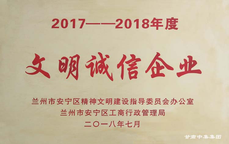 2018年7月20日,安寧區(qū)舉行2017-2018年度全區(qū)“文明誠信企業(yè)、文明誠信個(gè)體工商戶”表彰大會(huì)。會(huì)上,甘肅中集房地產(chǎn)開發(fā)有限公司榮獲安寧區(qū)“文明誠信企業(yè)”榮譽(yù)稱號(hào)。