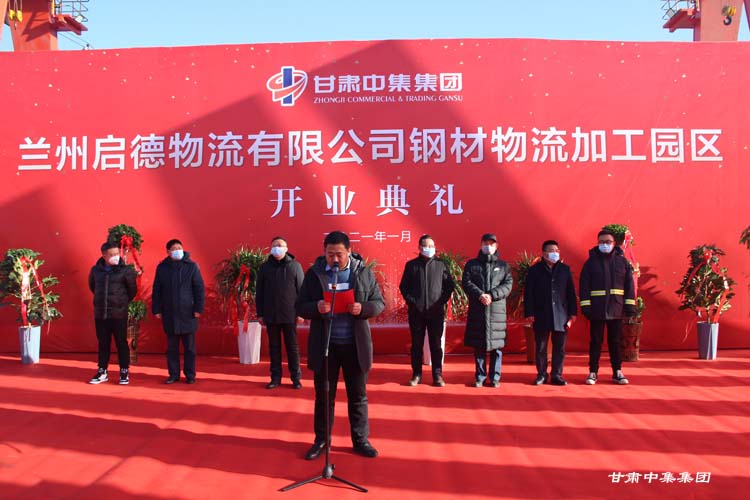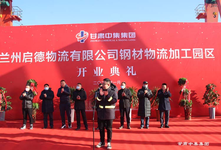 2021年1月12日上午10:18分,甘肅中集實(shí)業(yè)集團(tuán)有限公司旗下蘭州啟德物流有限公司河口鋼材物流加工園區(qū)開業(yè)慶典在甘肅物產(chǎn)集團(tuán)河口物流園隆重舉行。甘肅中集實(shí)業(yè)集團(tuán)有限公司黨委書記、董事長周啟濤隆重宣布物流園開業(yè)。酒鋼集團(tuán)、八一鋼鐵集團(tuán)、內(nèi)蒙古包鋼集團(tuán)、甘肅省物產(chǎn)集團(tuán)河口物流園、甘肅省鋼材商會(huì)、物流園轄區(qū)及公司合作伙伴等100余名領(lǐng)導(dǎo)嘉賓參加開業(yè)慶典。