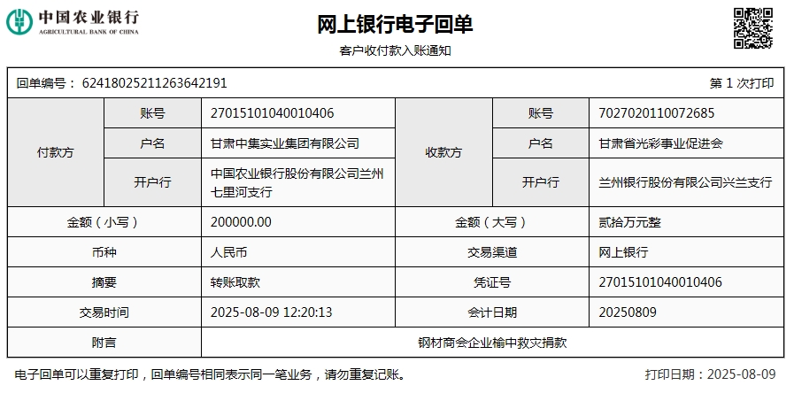災(zāi)情發(fā)生后,甘肅中集集團(tuán)迅速啟動(dòng)應(yīng)急響應(yīng)機(jī)制,通過(guò)甘肅省光彩事業(yè)促進(jìn)會(huì)捐贈(zèng)20萬(wàn)元,助力榆中縣災(zāi)害救援及災(zāi)后重建工作,幫助災(zāi)區(qū)早日恢復(fù)生產(chǎn)生活秩序。
